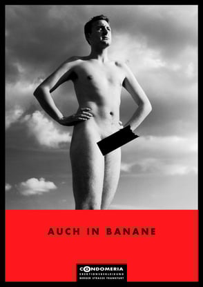 Normale Kondome kann man so gut wie überall kaufen. Besondere Kondome hingegen, sind sehr schwer zu finden. In Frankfurt gibt es zum Glück die Condomeria. Nur kennt die kaum jemand. Das ändern wir. Aber wie zeigen wir das, was wir in der Werbung nicht sehen wollen? In dem wir es nicht zeigen. Wir zensieren unsere eigene Kampagne. Mit einem Zensurbalken. Allerdings lässt der Zensurbalken ziemlich deutliche Rückschlüsse zu …