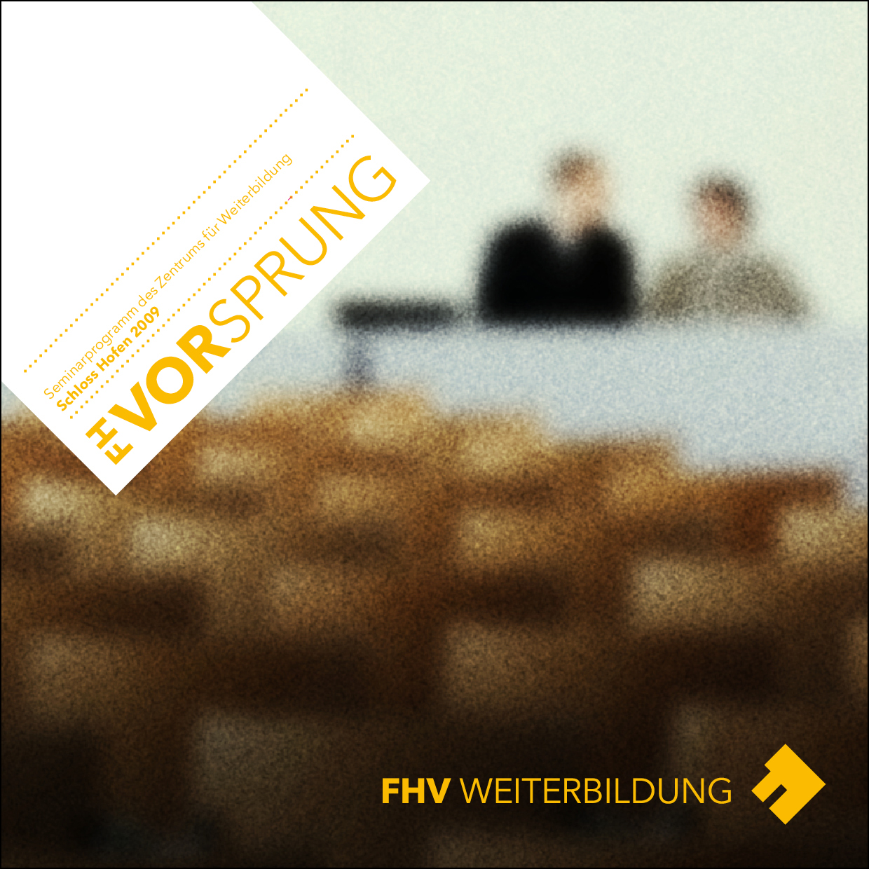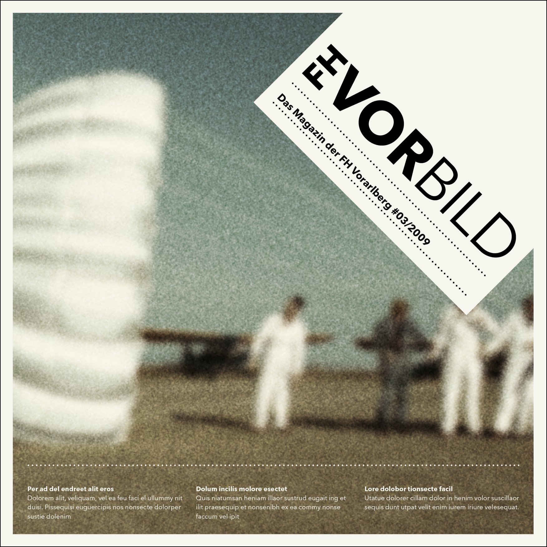 Die Fachhoschschule Vorarlberg benötigte einen neuen Auftritt, der ihrer nach vorn gerichteten Arbeits- und Denkweise entsprach. In dem Namen FH Vorarlberg steckt schon viel visionäres. Ein „vor“. Dieses „vor“ ist die Grundlage des neuen Auftritts: Vordenker, Vorstoß, Vorbild etc. Auch die Bildsprache spiegelt das visionäre wieder. Die Bilder manifestieren sich erst. Sie sind noch leicht unscharf mit grober Körnung. Wie die Aufnahmen von scheinbar unerklärlichen Dingen.
